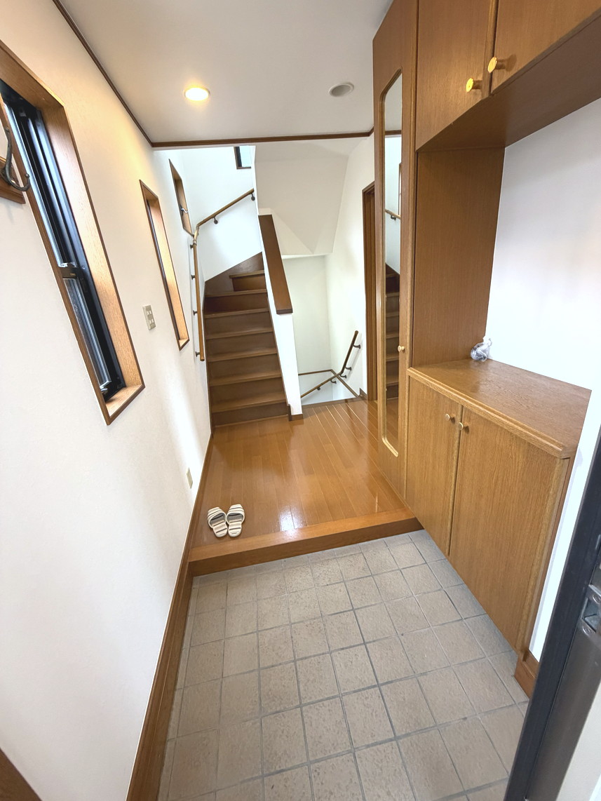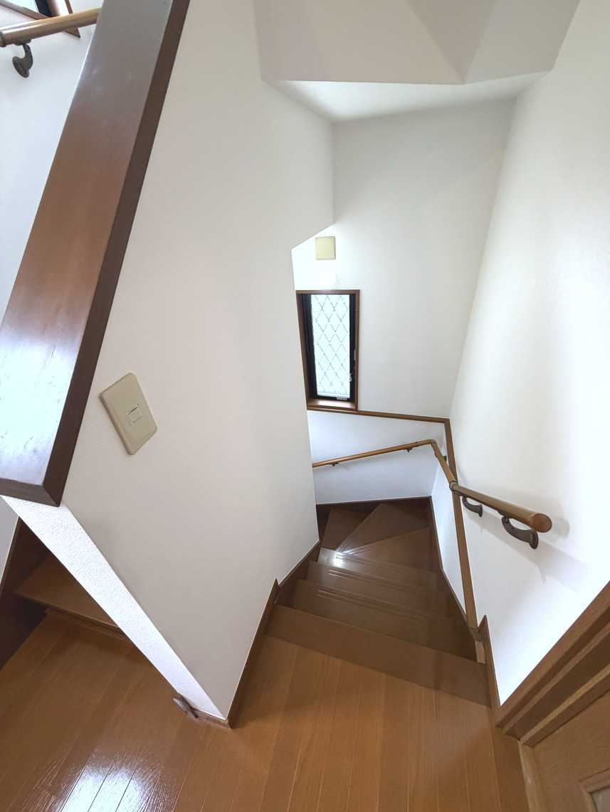 玄関入ると地下と2階への階段があります。