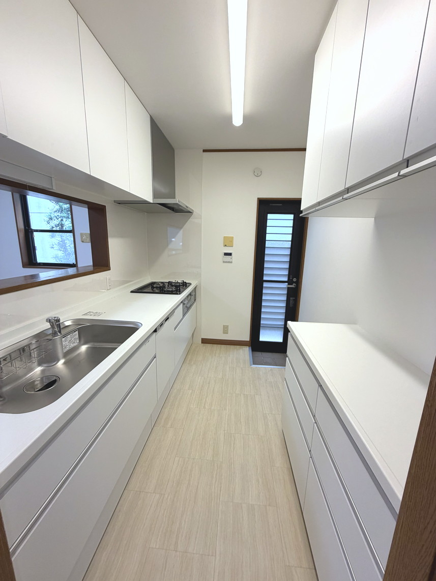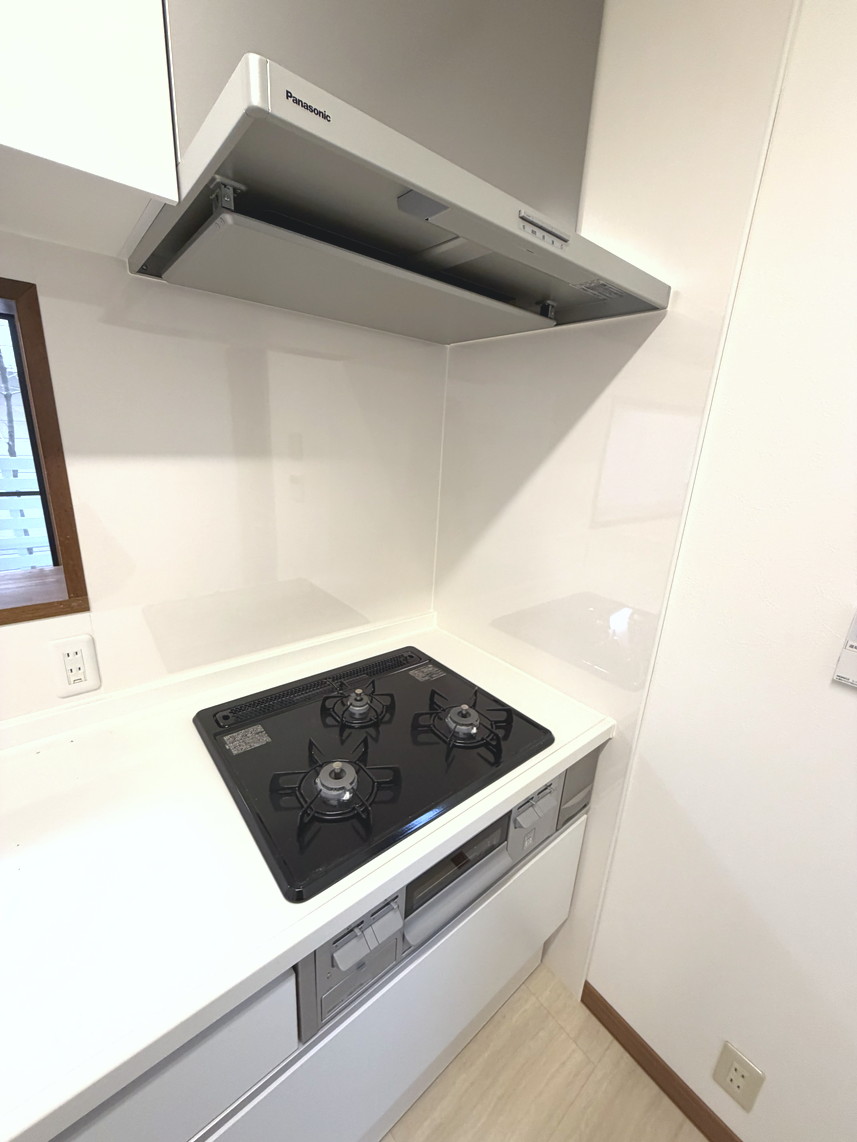 キッチンは3口システムキッチンで勝手口もついています。