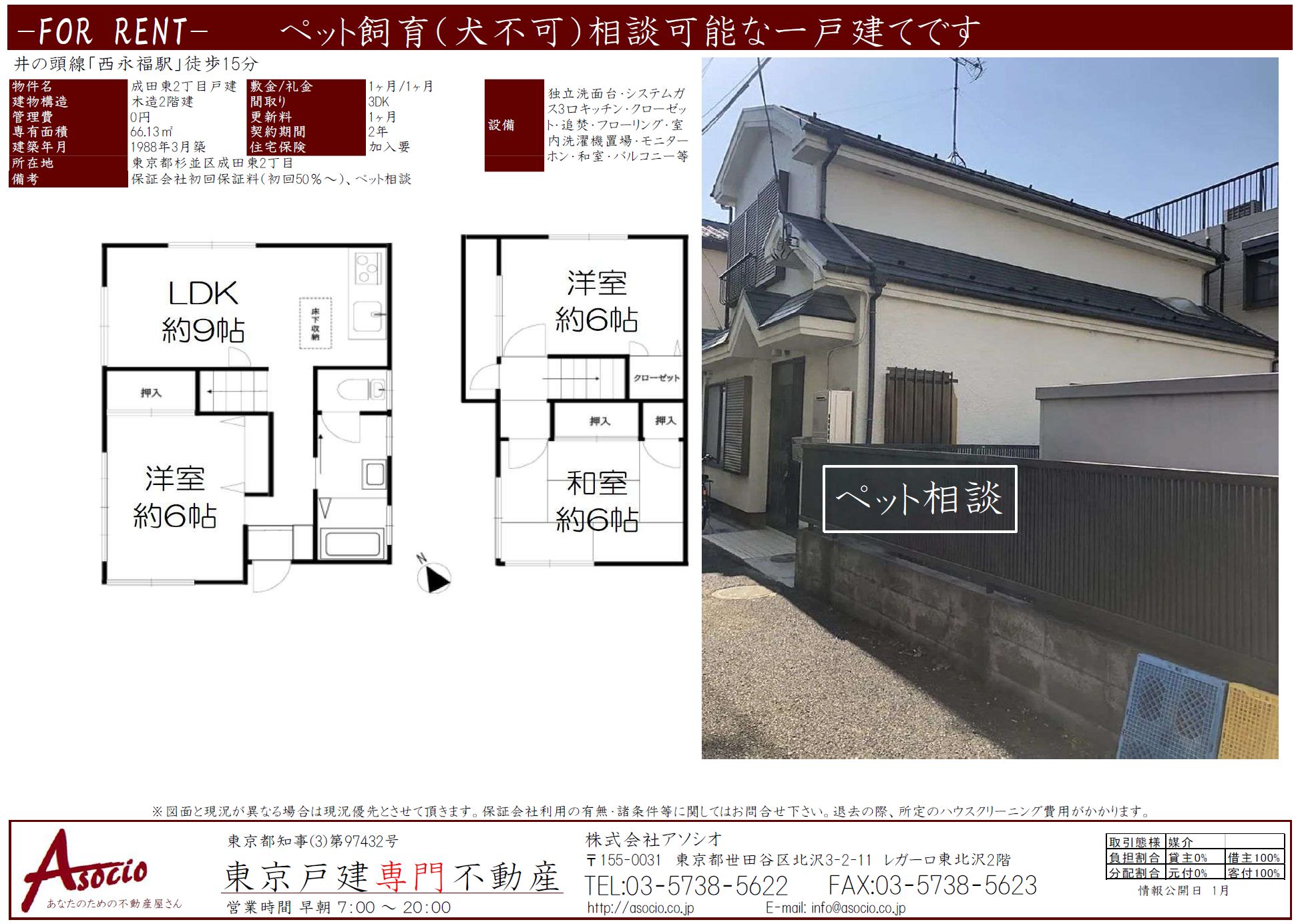 | 物件名 | 成田東2丁目戸建 | 敷金/礼金 | 1ヶ月/1ヶ月 | ||||